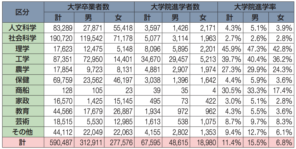 2024年3月卒業時点の大学院進学率は、全体で11.4%です。